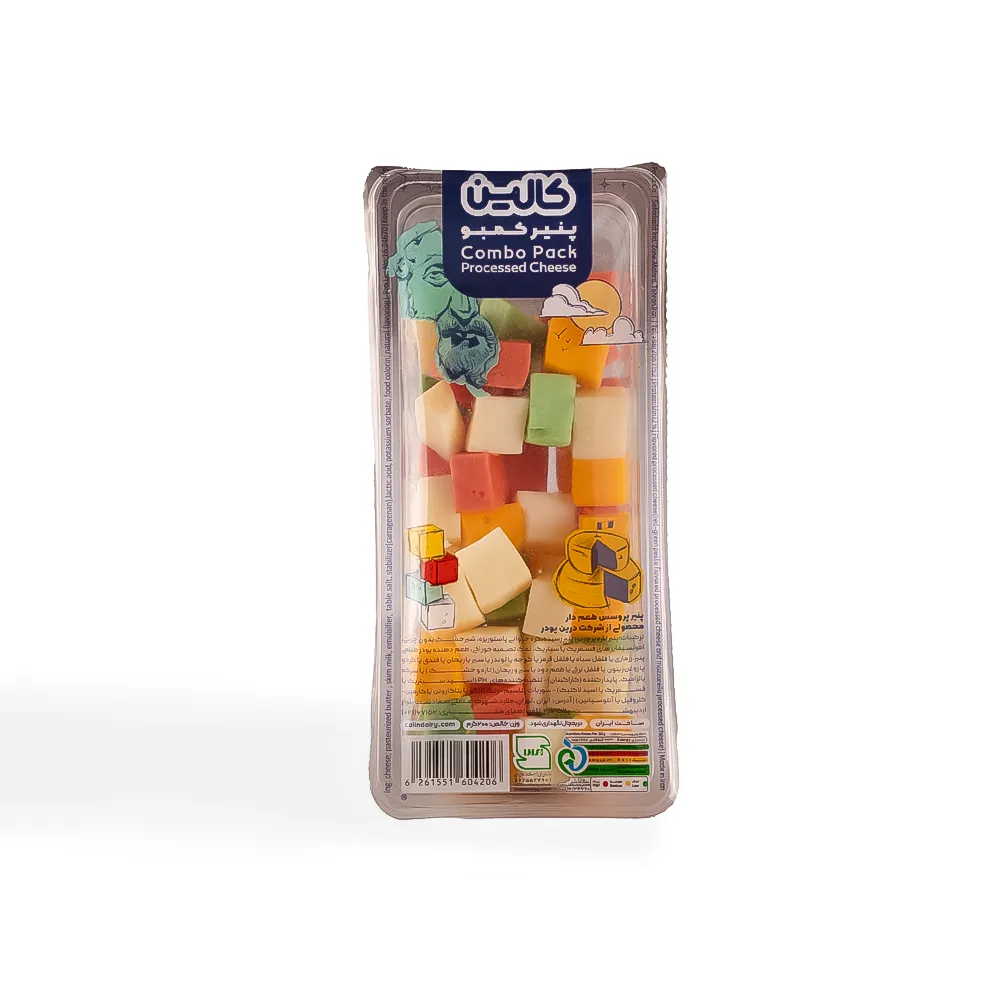 پنیر کمبو 200 گرمی کالین یا کمبوپک، ترکیبی خوشمزه از چهار نوع پنیر پستو، موزارلا ساده، چدار و موزارلای فلفلی است.